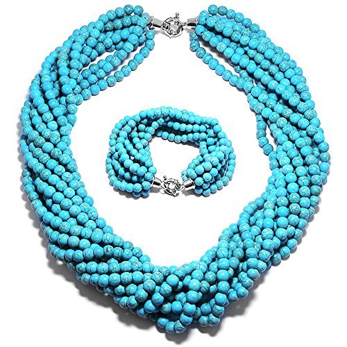 Best Seller! Blue Synthetic Turquoise Rounds-10 strings Jewelry set(Necklace & Bracelet), maxin 6MM 10-Strand Loose Beads set Review
