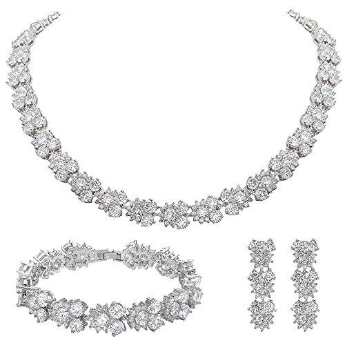 Best Seller! EVER FAITH® Women's Round Zircon Elegant Wedding Necklace Earrings Bracelet Set Clear Silver-Tone Review