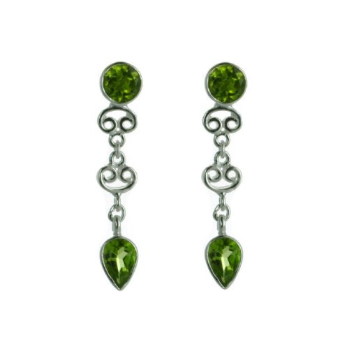 At one end of an ornate 925 sterling silver chain hangs a tear drop faceted green peridot and at the other end a round faceted green peridot. A delicate pair of earrings. Excellent value and an ideal gift! Length:3.5cms/1.5inches.Franki Baker is an up and coming jewellery brand based in the Scottish Highlands, offering over 600 designs in a wide range of different styles. You will find that special piece for all occasions: the office, lunch with friends, weddings, holidays or the Oscars! Franki has a diploma in art and design and has used her passion for art to create unique items not found elsewhere. She loves combining natural semi-precious gemstones and pearls with silver. Franki makes some of the jewellery herself and designs pieces which are then made by skilled craftspeople. Each piece is handmade and provides good value for money. We choose only ethical jewellery makers who provide good working conditions for their craftsmen and support the Bal Rashmi Society, a UN accredited NGO which helps destitute women in India. Sales of the Zulu jewellery help support people afflicted with AIDS in Africa. All the jewellery comes in quality packaging designed to suit the item, including jewellery boxes or pouches made of silver organza for the women's jewellery and black with classic silver trim for the men's collection.
