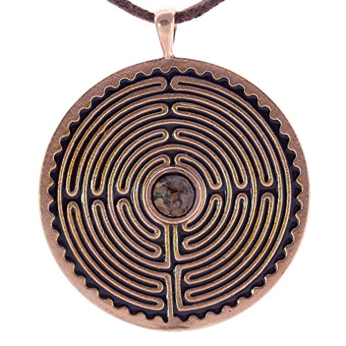 Best Seller! From War to Peace Women's Labyrinth Peace Bronze Pendant Necklace with 6mm Dinosaur Bone Gemstone on Adjustable Natural Fiber Cord Review