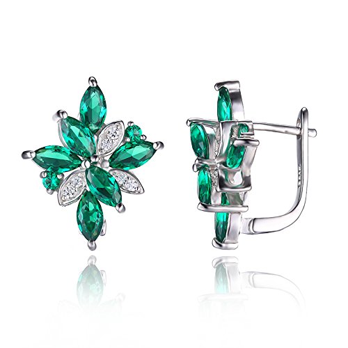 Best Seller! JewelryPalace Flower Shape 2.5ct Simulated Green Nano Russian Emerald Clip On Earrings 925 Sterling Silver Review