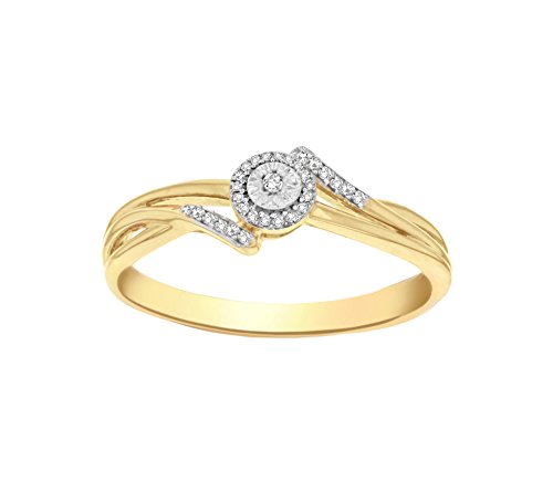 Best Seller! Pave Prive Women's 9ct Yellow Gold Round White Diamonds Set in Circle and Wavy Band Ring Size - N JR101013904 Review