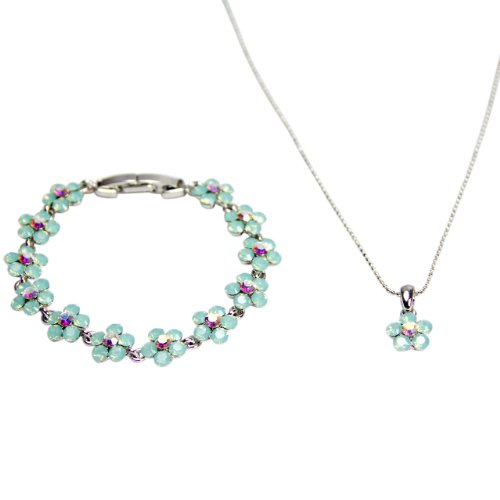 Best Seller! Sea Green Opal Swarovski Crystal Single Flower Necklace and Bracelet, Rhodium Plated Silver Finish and Nickel Free Metal by Dance Jewellery Review