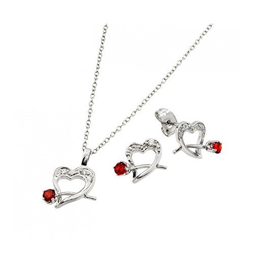 Best Seller! Sterling Silver Rhodium Plated Clear Heart Red Rose Cubic Zirconia Stud Earring & Necklace Set Review