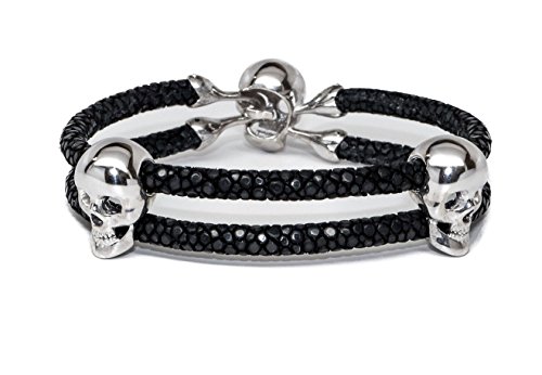 Lavriche offer Stingray Bracelet Leather with 925 Silver Plated Skull Beads High Quality. This awesome product currently limited units, you can buy it now for £54.99, You save -